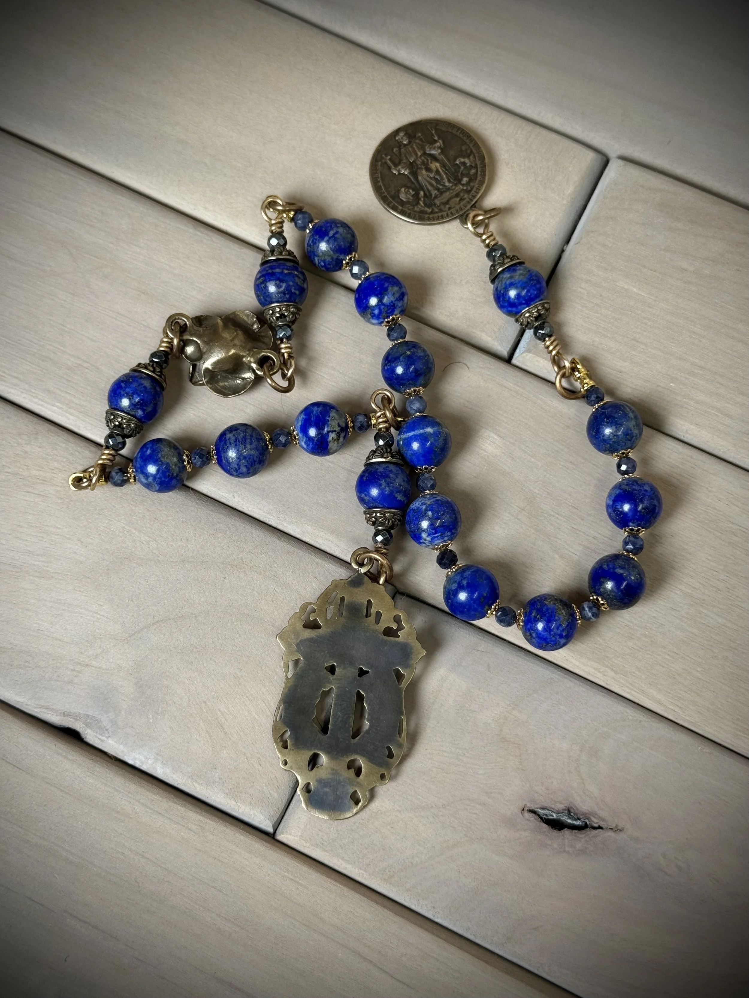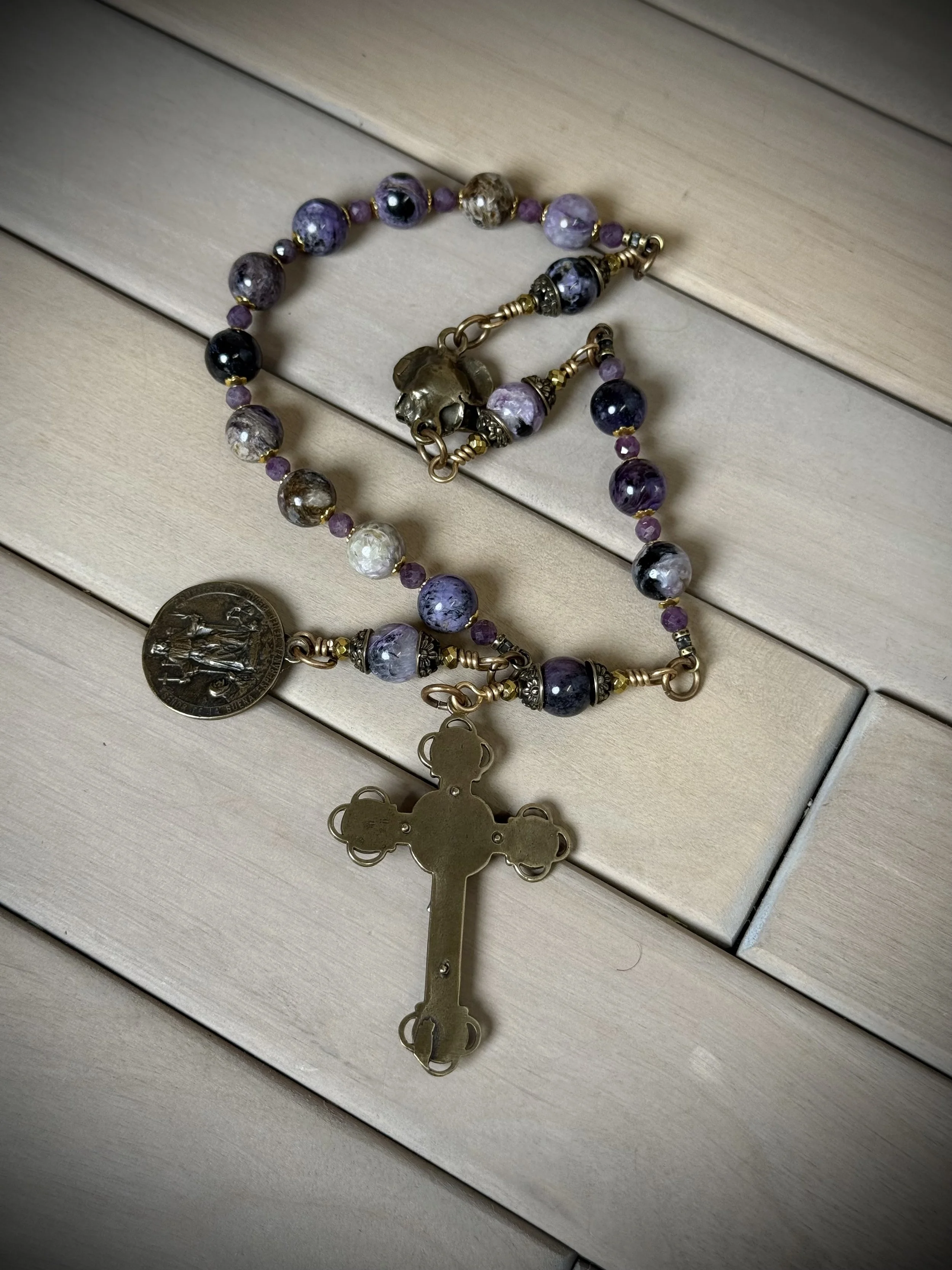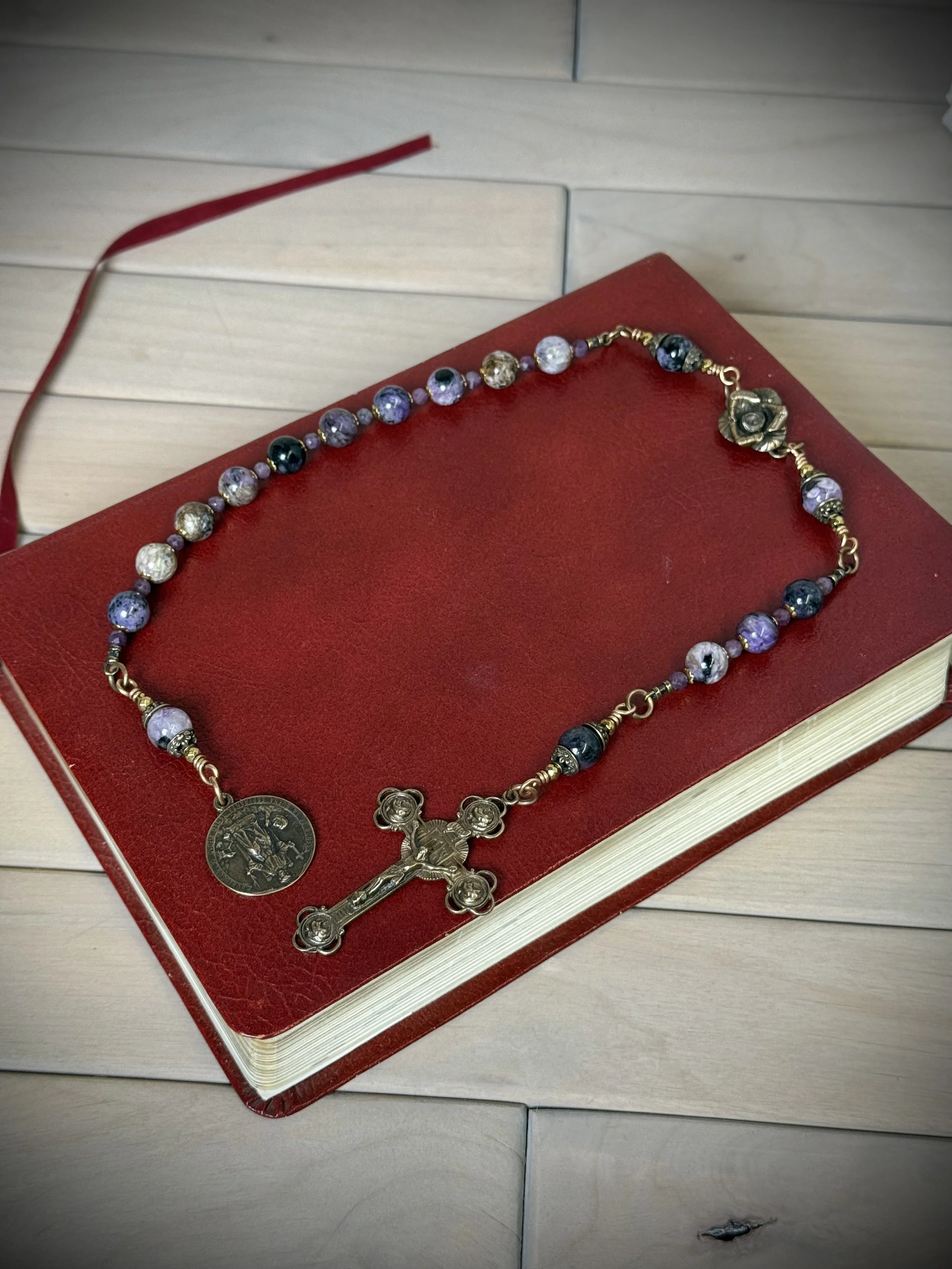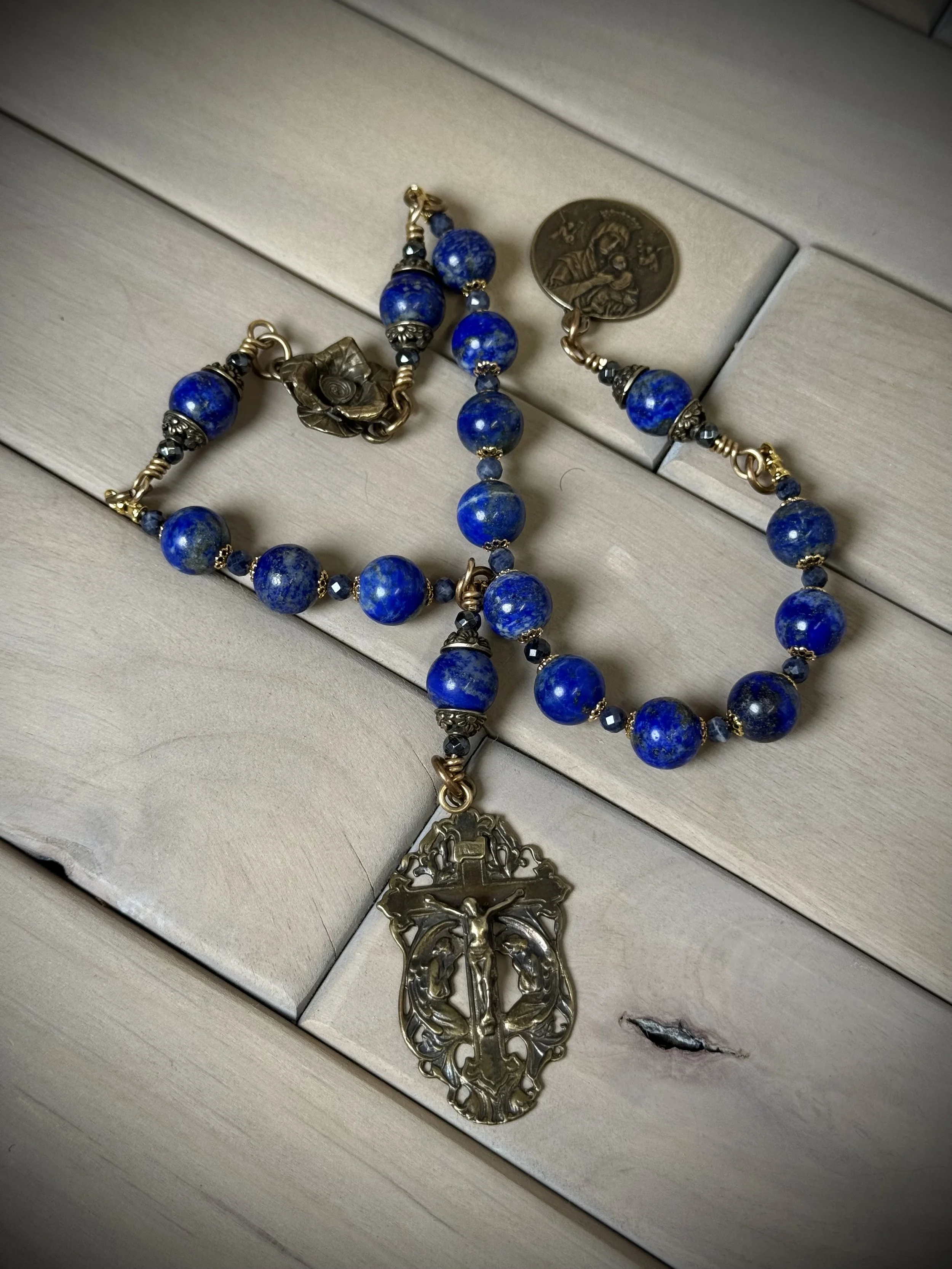 God made 100% natural precious and semi precious gemstones, biblical metals, 24 karat gold, silver, bronze, brass. Built strong and intended to be an heirloom rosary.