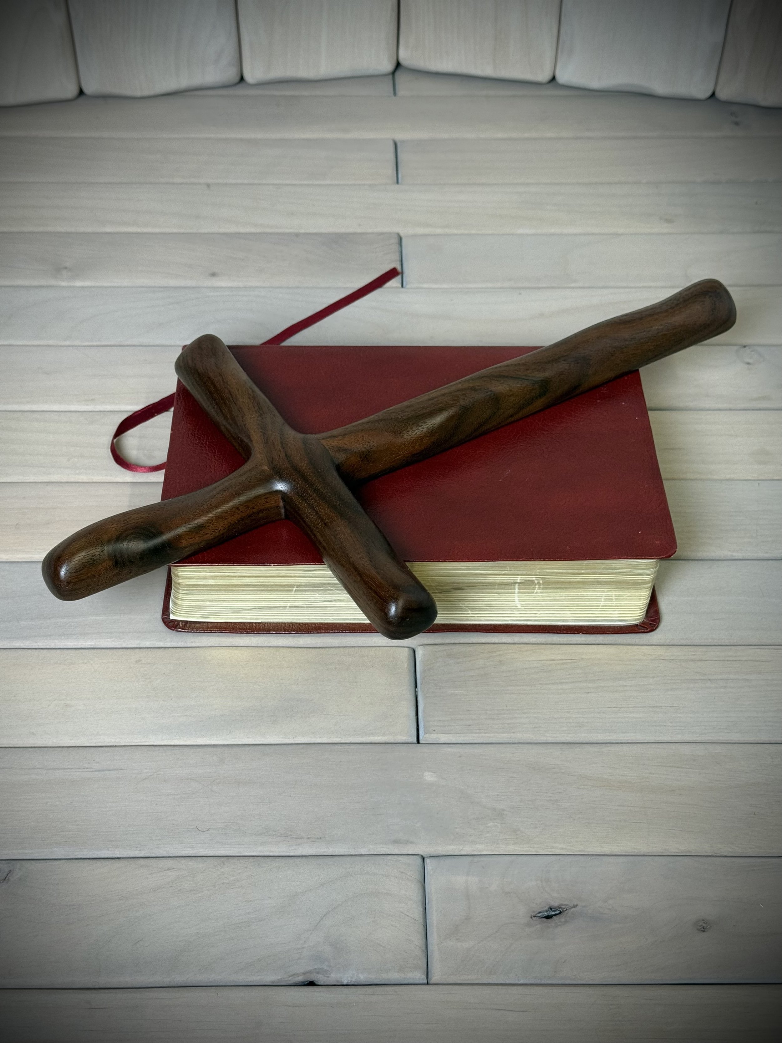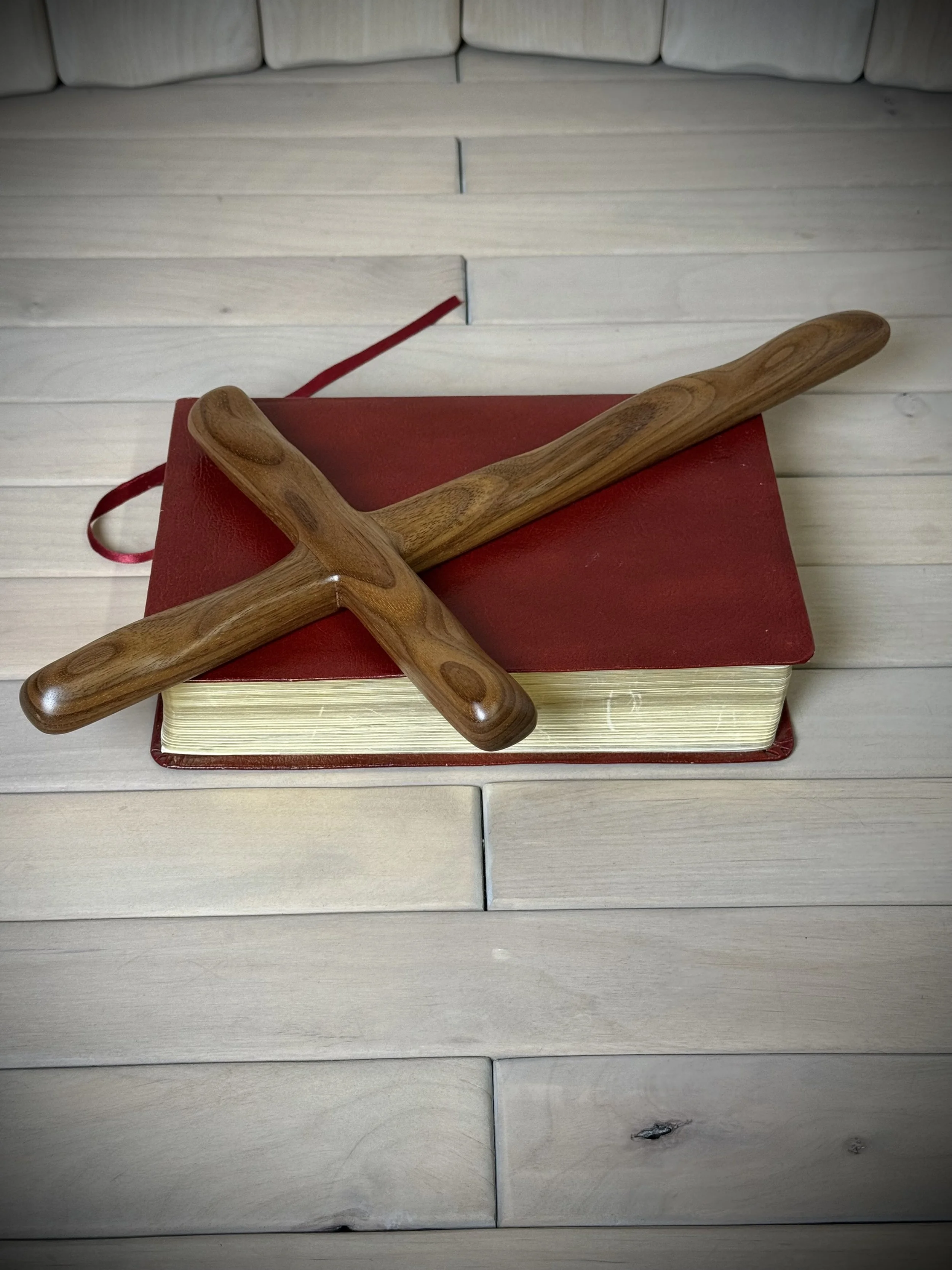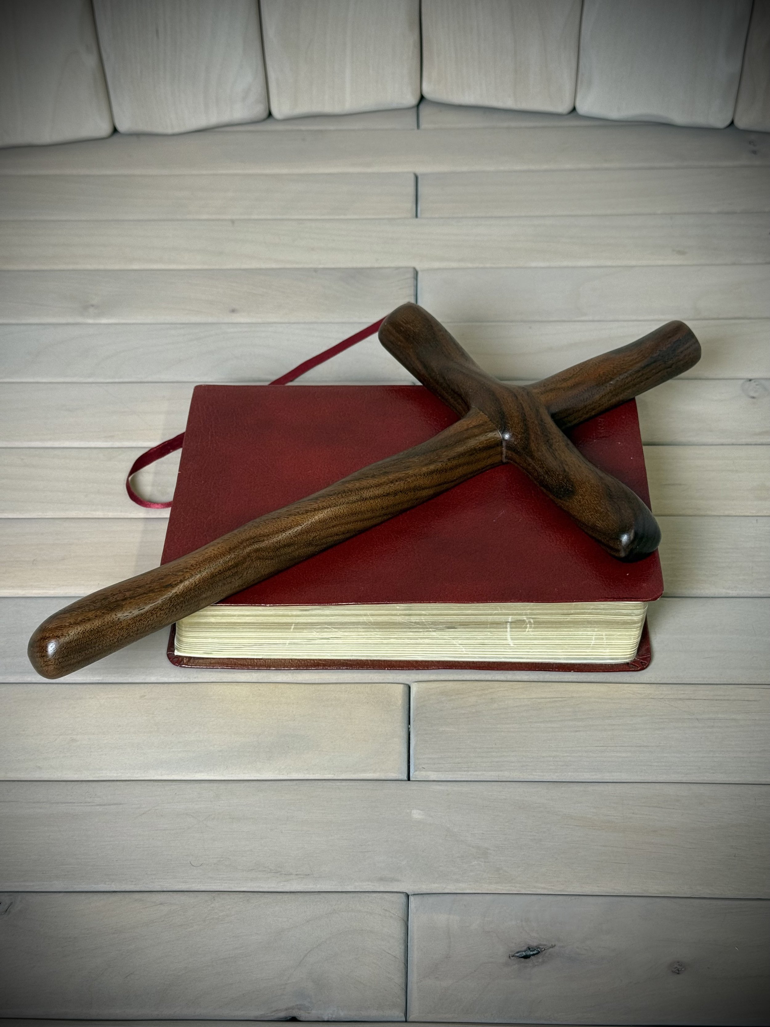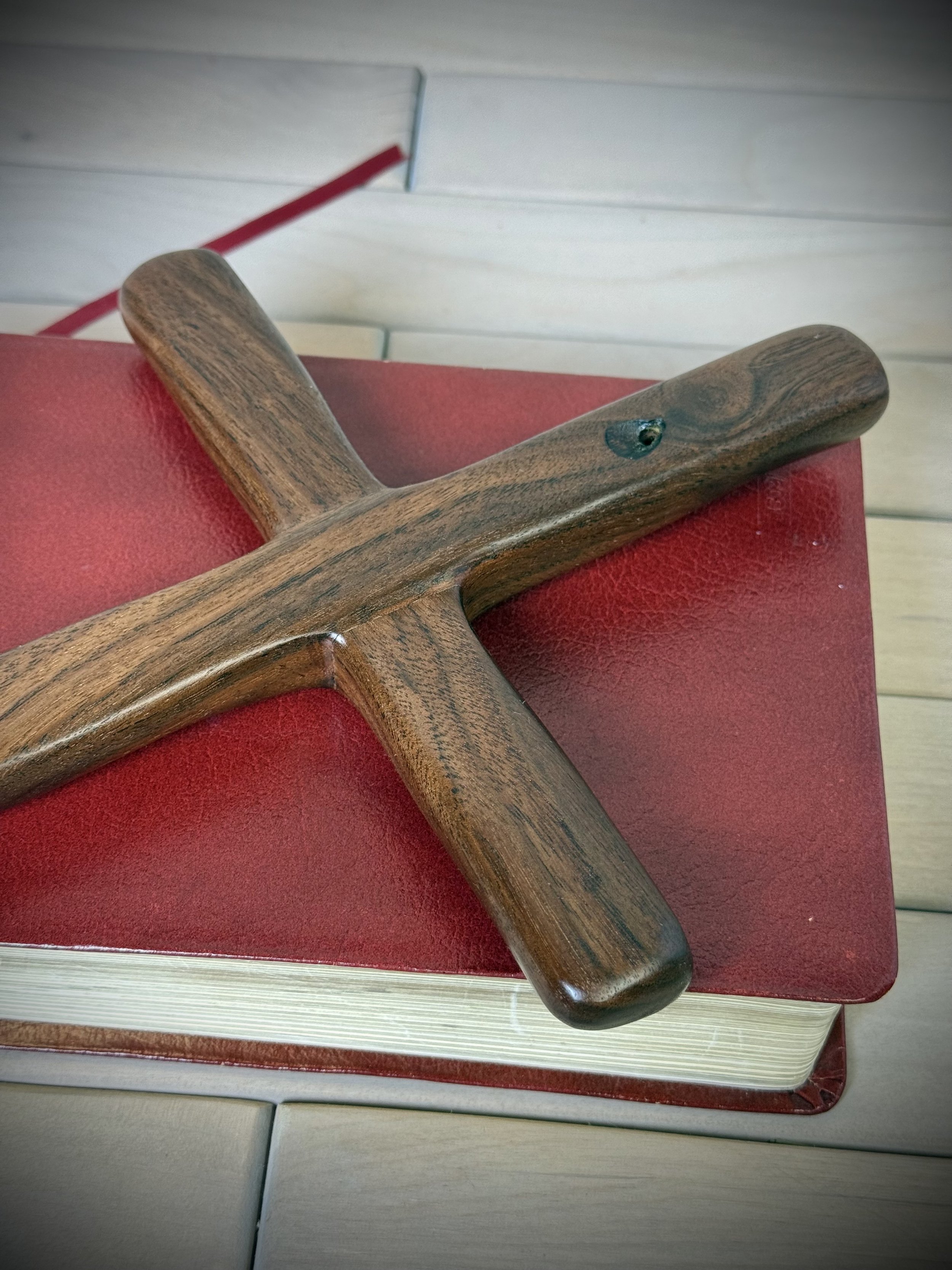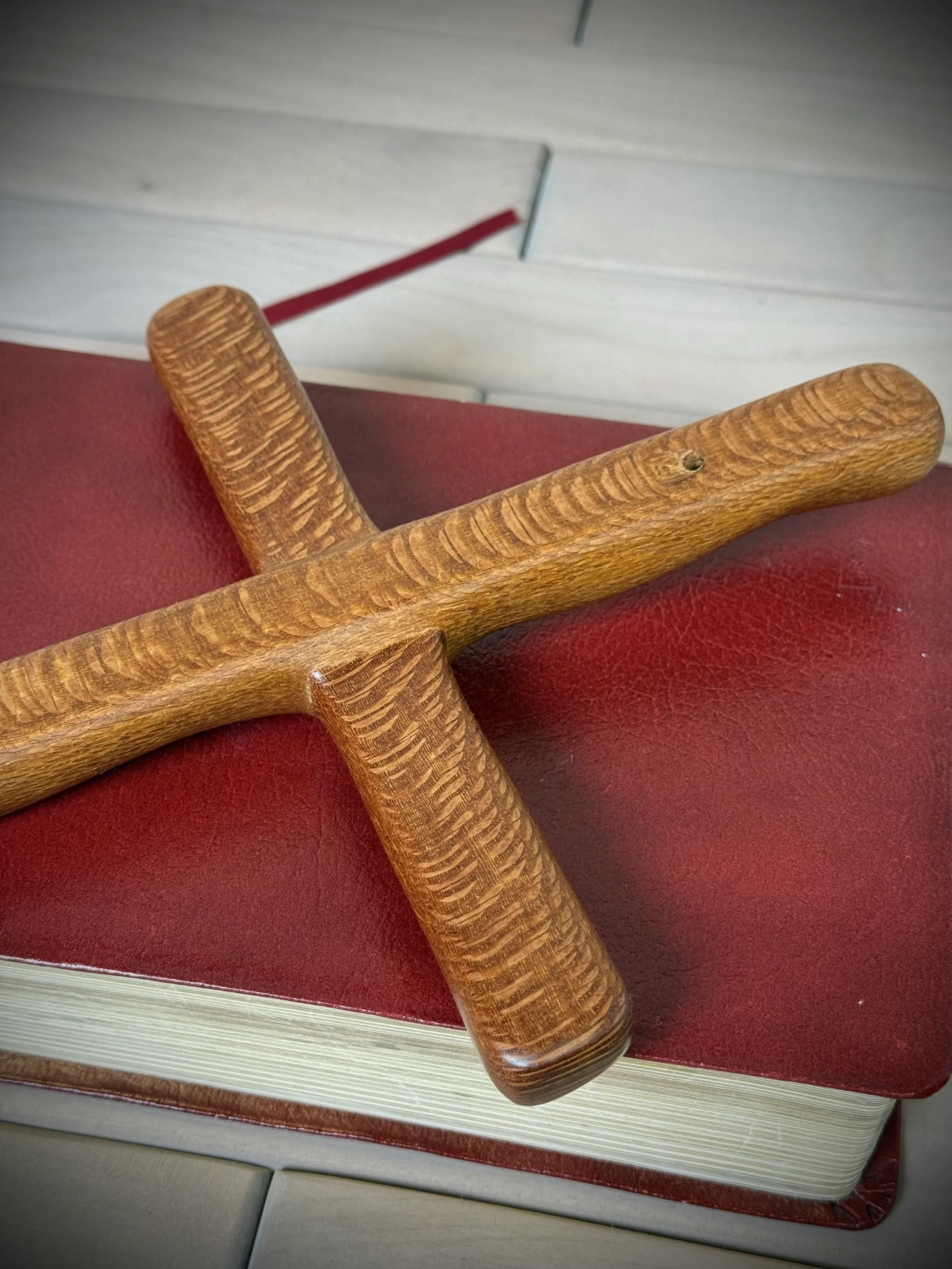 Each Humble Cross is hand carved from beautiful hand selected, solid plank and slab hardwoods from the USA and around the world. The bottom part of the cross and the cross arm each have 3 heavy-carved diagonal rugged indentations symbolizing 3 and 3 or 33 for the age of Jesus when he was crucified. The top part of the cross has one heavy carve representing the one true God. Our Humble Cross is intended to represent simplicity while still exposing the beautifulness of God's creation in the wood.